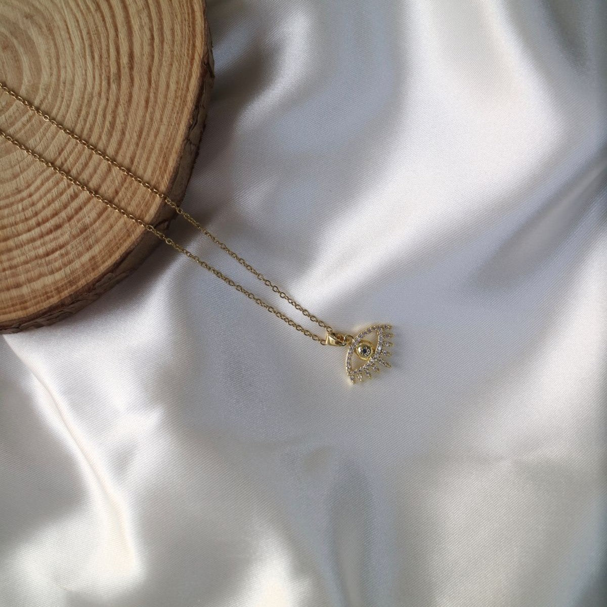 A radiant Golden Evil Eye Pendant Necklace crafted for protection, positivity, and everyday elegance. This sparkling eye charm adds a touch of shine and meaning to any outfit—perfect for daily wear or gifting.